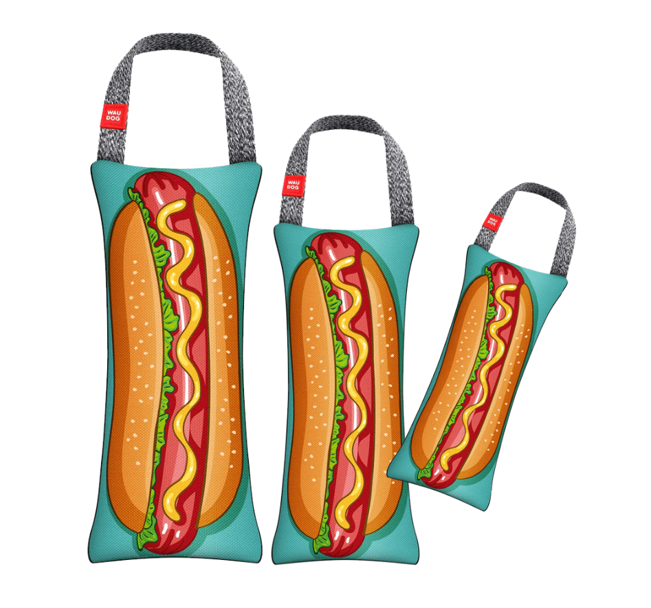 צעצוע לעיסה ומשיכה מצפצף לכלב עם הדפס נקניקיה WAU DOG